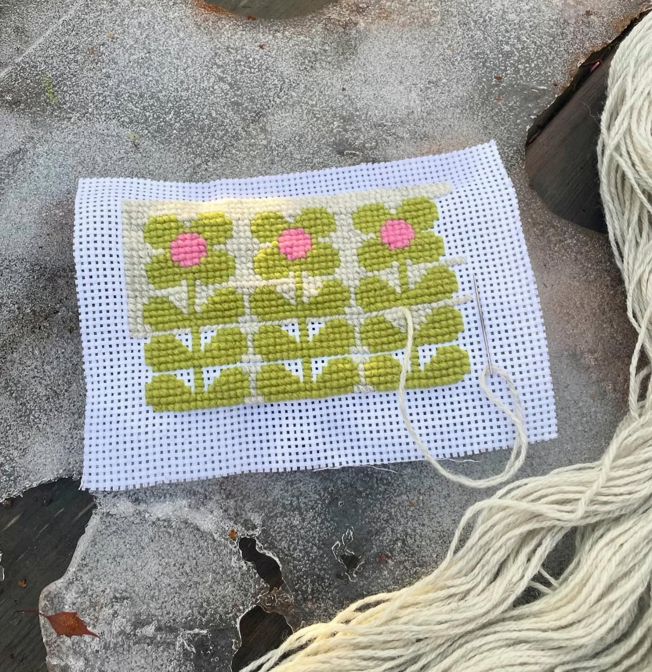 Broderikit med ullgarn ” 3 retroblommor ”