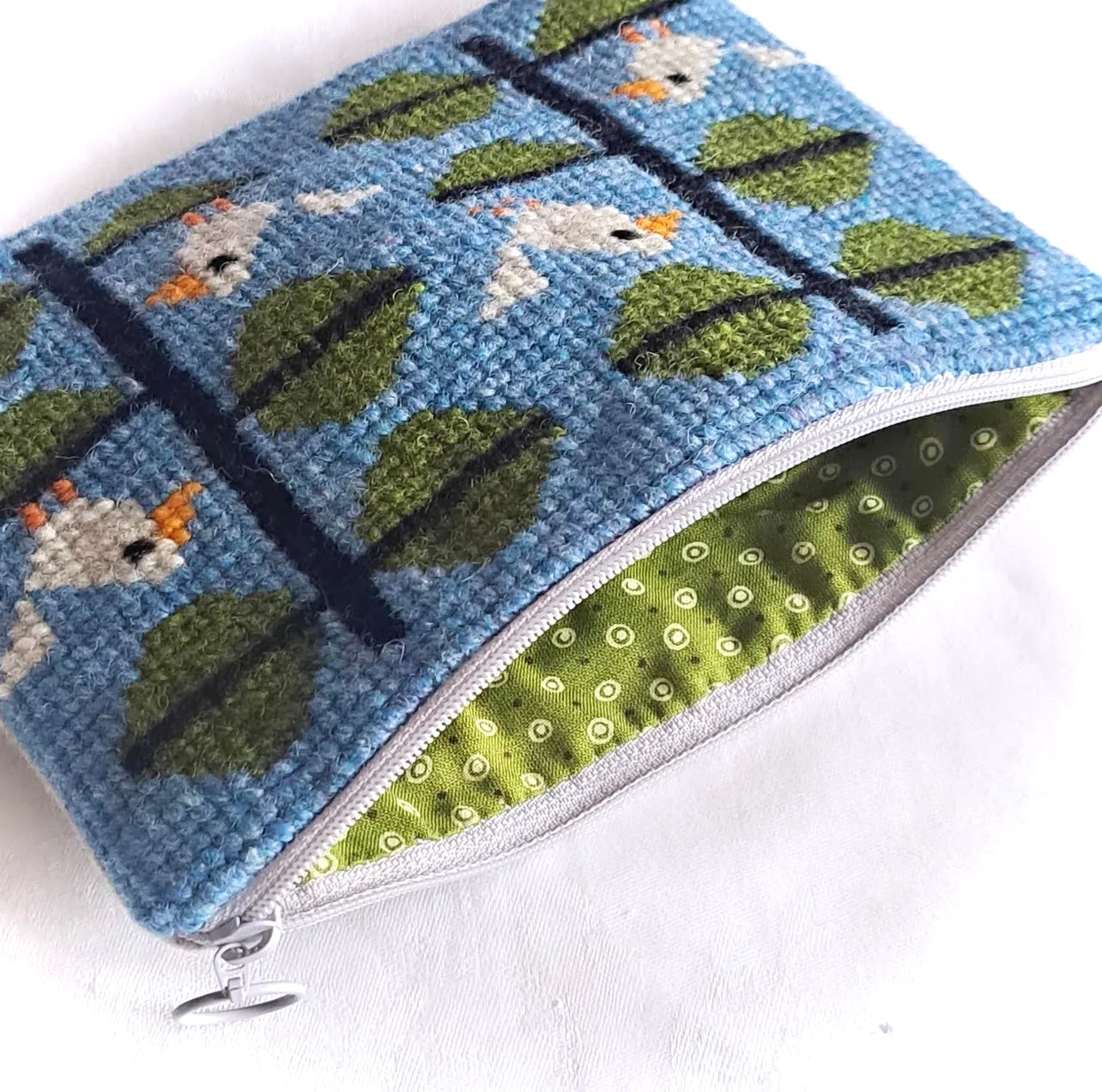 Broderad, nysydd börs i 100% ullgarn & baksida av vadmal.