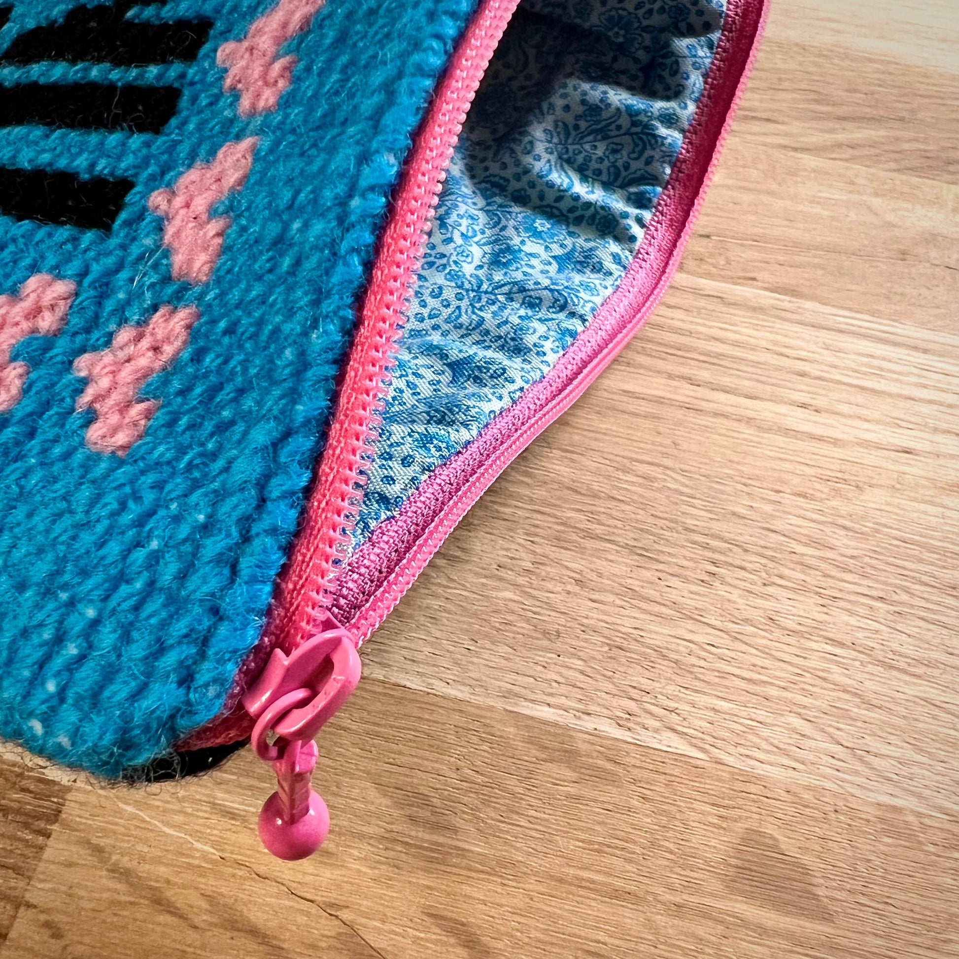 Handgjord unik börs, ”lev nu, dö sen” turkos 19x14cm